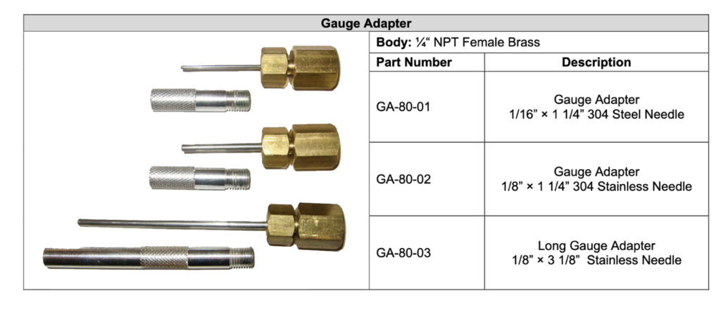 Gauge adapters are used to connect the pressure gauge to the test port. There are a few simple rules for safe usage. Gauge adapters ship from stock. Contact sales@txtestplugs.com for wholesale/dealer prices.