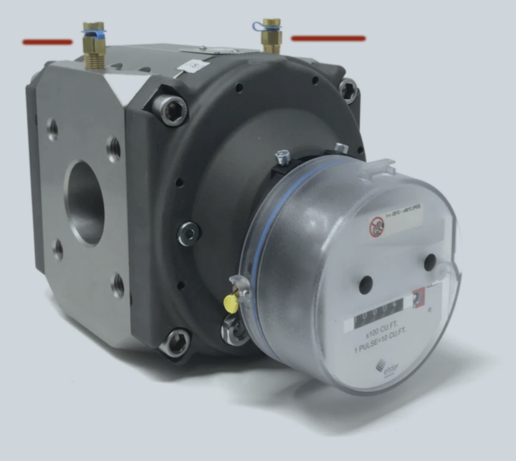 Rotary gas meters have test ports on the inlet and outlet sides. This provides a way to measure the differential pressure across the meter’s impellers. This differential pressure test checks the meter’s mechanical health by monitoring internal friction. A significant increase in the pressure drop can indicate excessive wear or other performance issues. These test ports allow for periodic monitoring and establishing a baseline for meter performance.